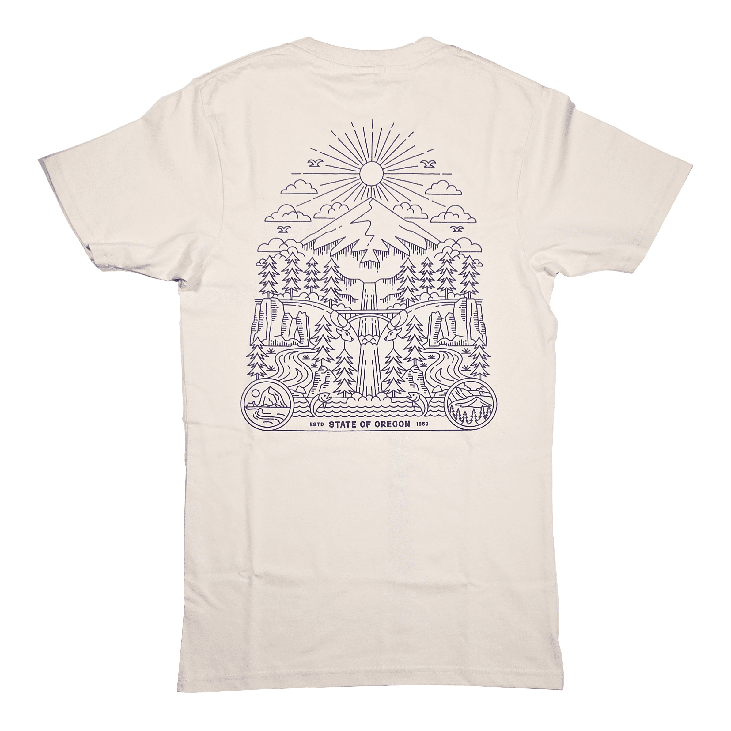 “Oregon ESTD 1859” chest detail + full back outdoor line-art design